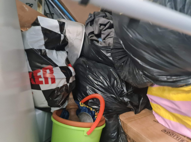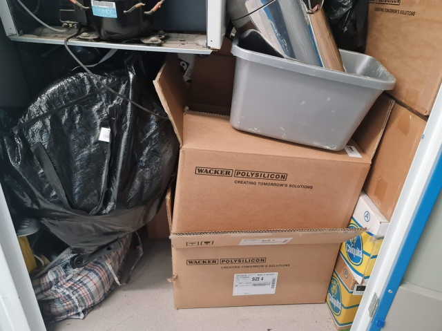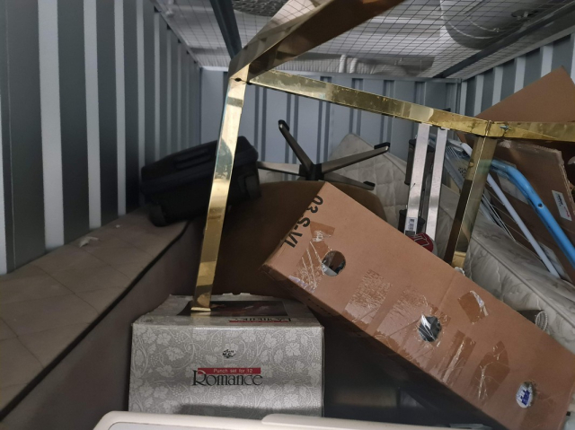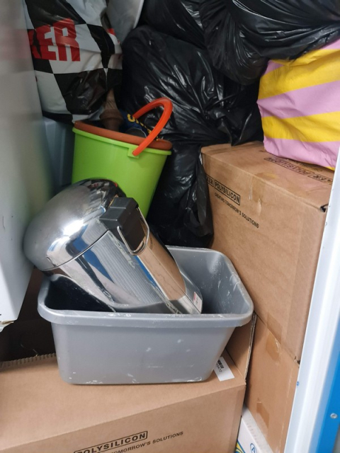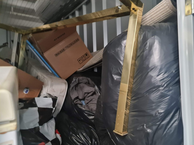 Myydään huutokaupalla kuvassa näkyvän varaston sisältö, vuokranantajan / haltijan lukuun.