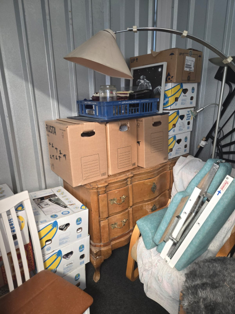 Myydään huutokaupalla kuvassa näkyvän varaston sisältö, vuokranantajan / haltijan lukuun.