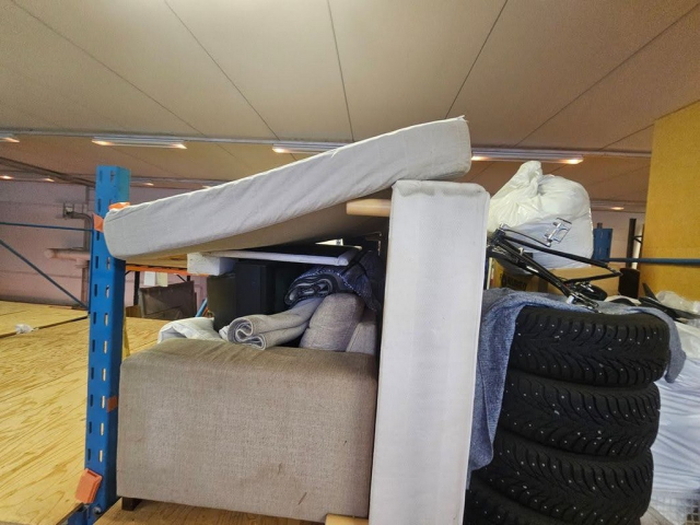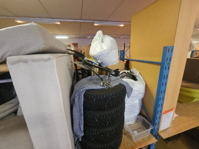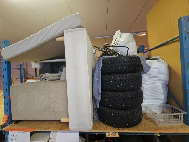 Myydään huutokaupalla kuvassa näkyvän varaston sisältö, vuokranantajan / haltijan lukuun.