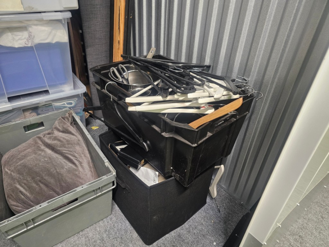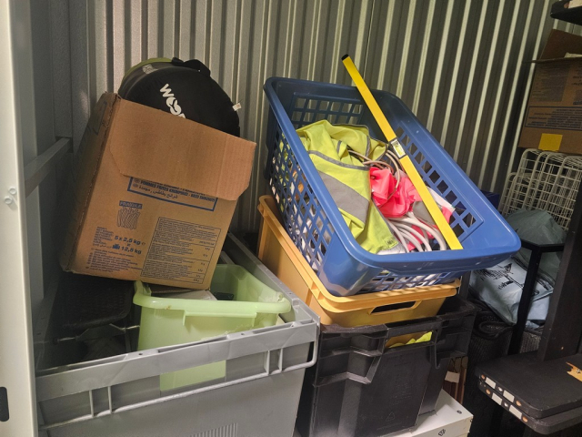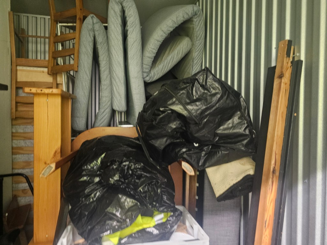 Myydään huutokaupalla kuvassa näkyvän varaston sisältö, vuokranantajan / haltijan lukuun.