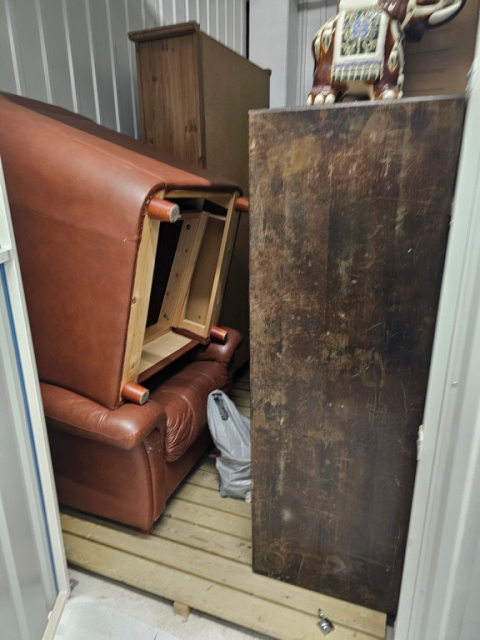 Myydään huutokaupalla kuvassa näkyvän varaston sisältö, vuokranantajan / haltijan lukuun.