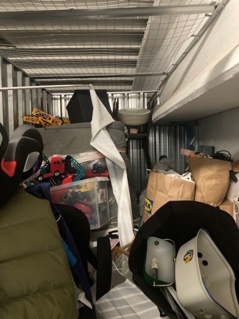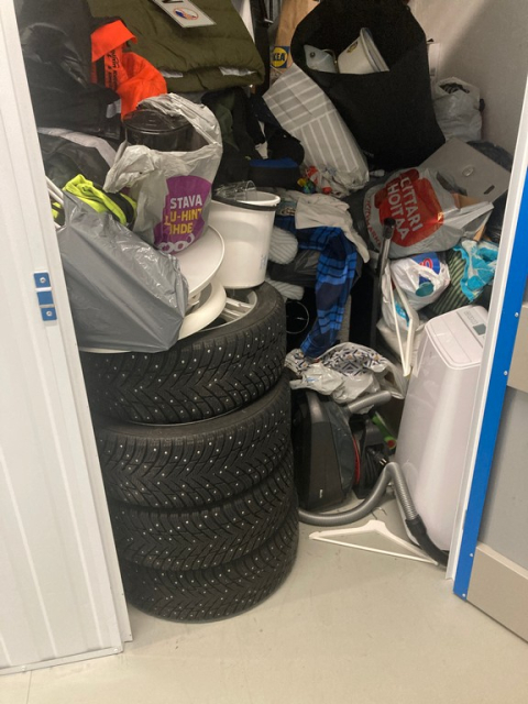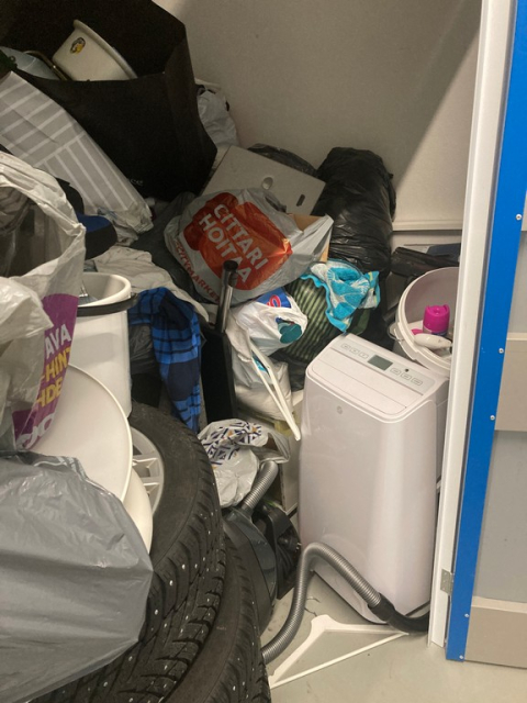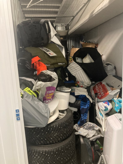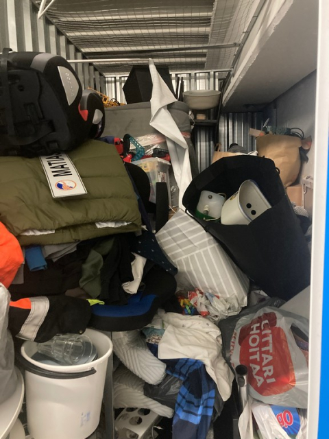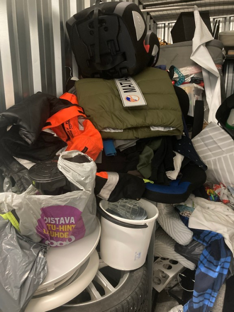 Myydään huutokaupalla kuvassa näkyvän varaston sisältö, vuokranantajan / haltijan lukuun.
