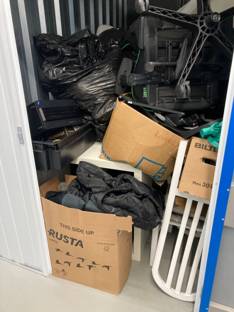 Myydään huutokaupalla kuvassa näkyvän varaston sisältö, vuokranantajan / haltijan lukuun.