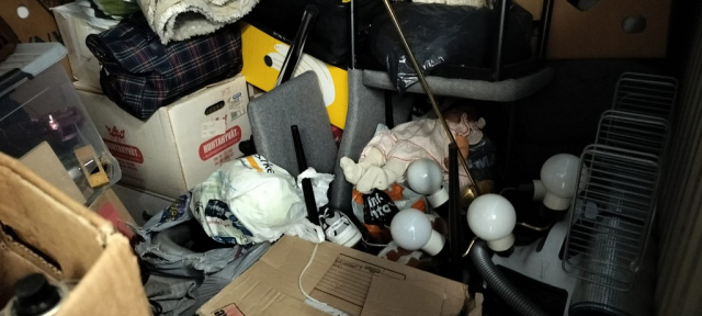 Myydään huutokaupalla kuvassa näkyvän varaston sisältö, vuokranantajan / haltijan lukuun.