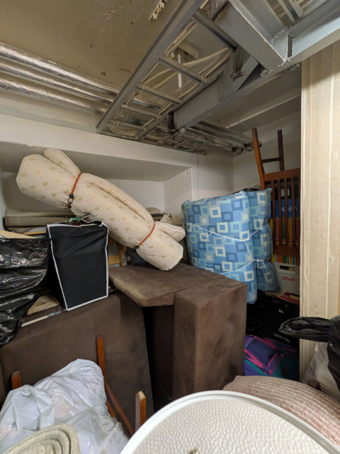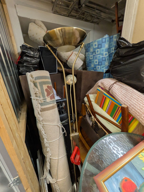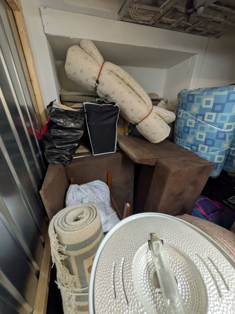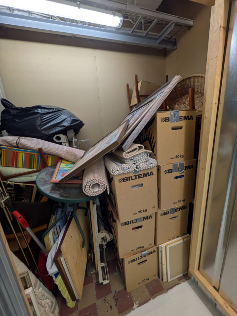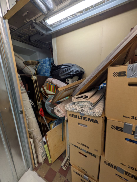 Myydään huutokaupalla kuvassa näkyvän varaston sisältö, vuokranantajan / haltijan lukuun.