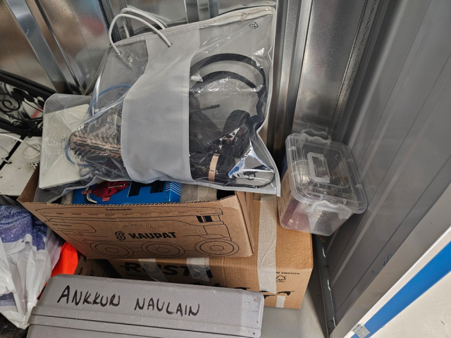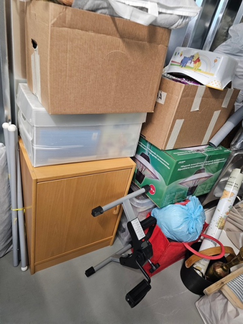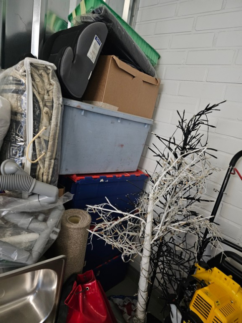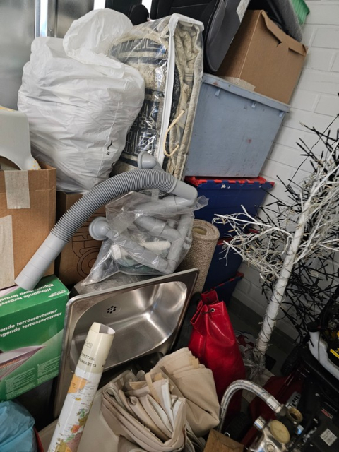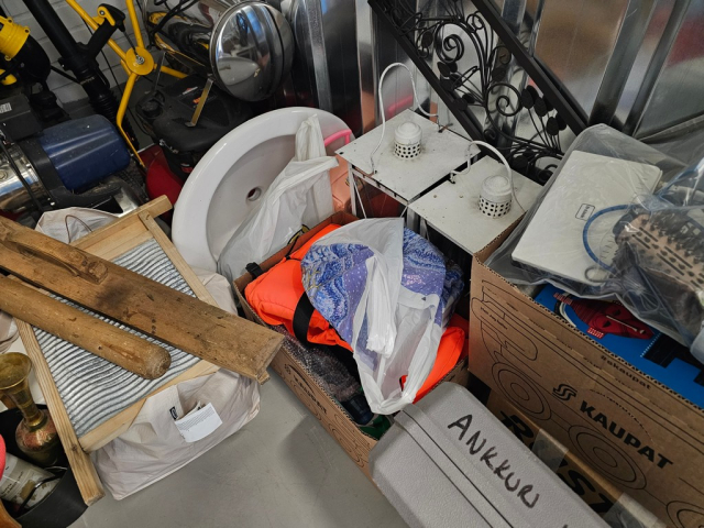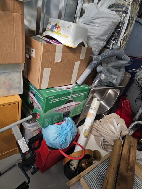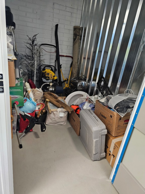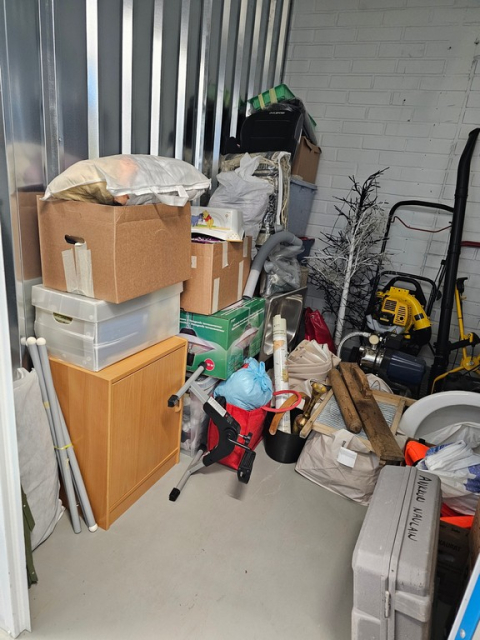 Myydään huutokaupalla kuvassa näkyvän varaston sisältö, vuokranantajan / haltijan lukuun.