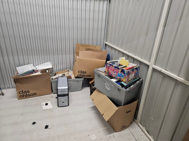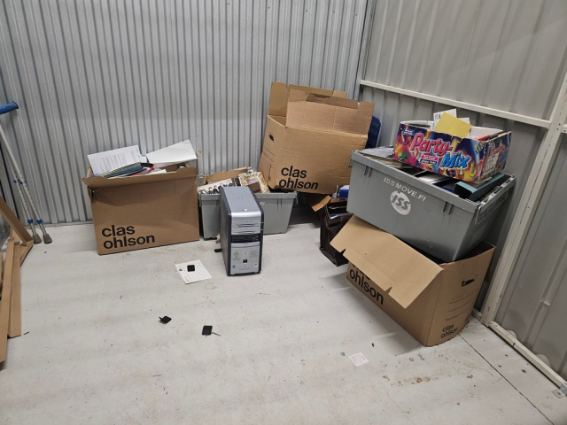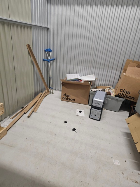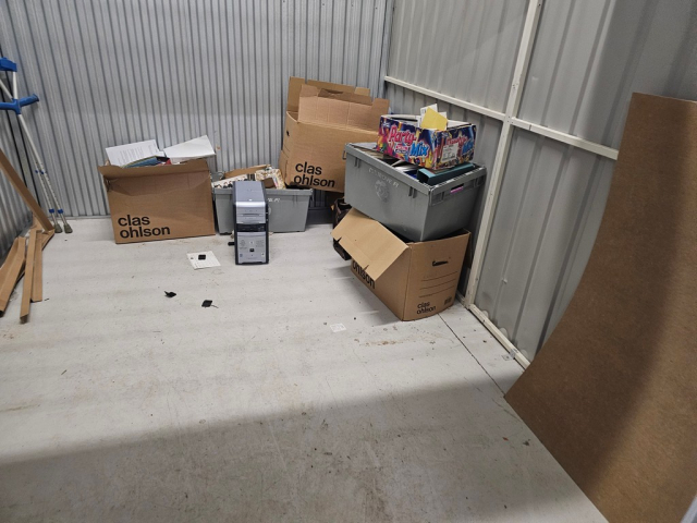 Myydään huutokaupalla kuvassa näkyvän varaston sisältö, vuokranantajan / haltijan lukuun.