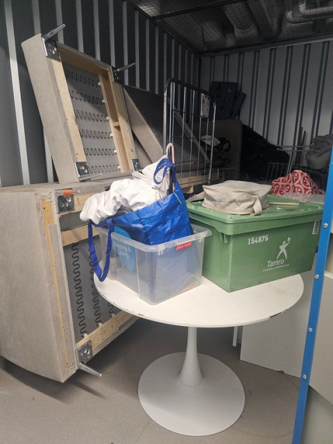 Myydään huutokaupalla kuvassa näkyvän varaston sisältö, vuokranantajan / haltijan lukuun.