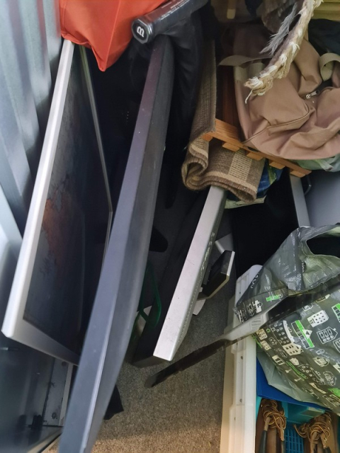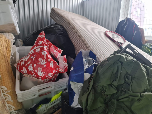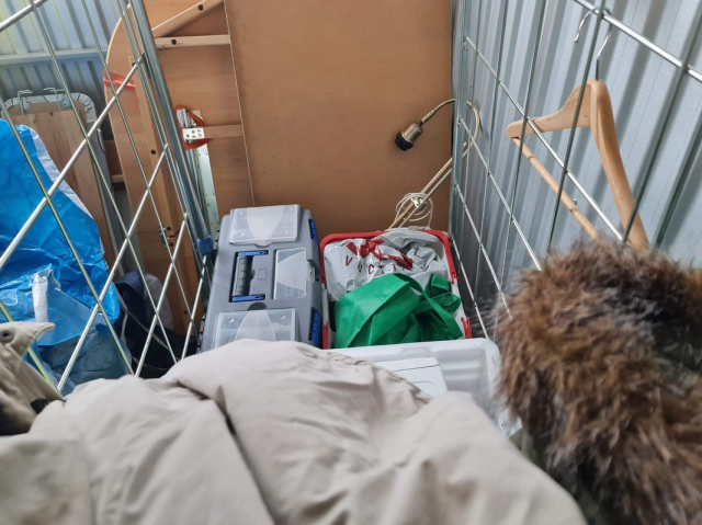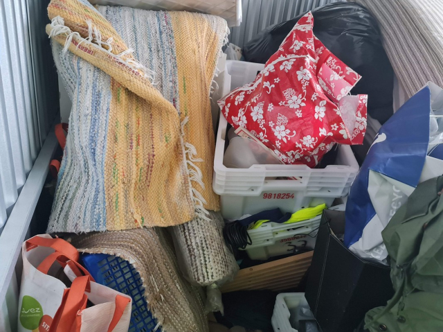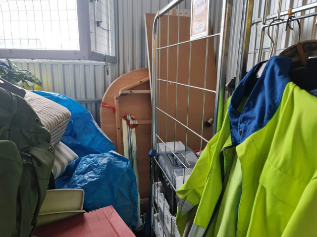 Myydään huutokaupalla kuvassa näkyvän varaston sisältö, vuokranantajan / haltijan lukuun.