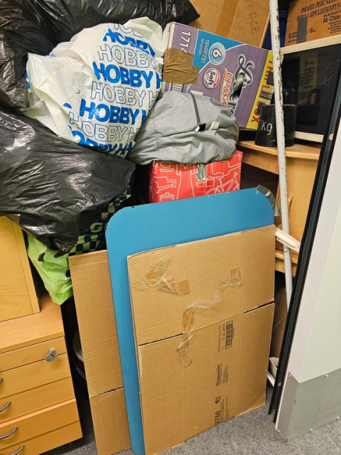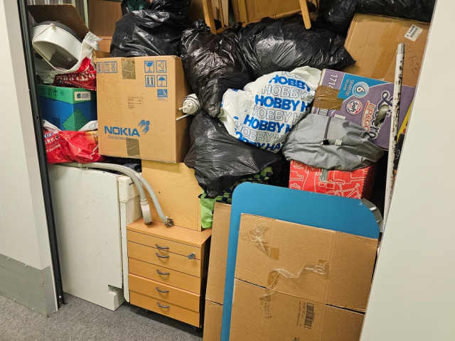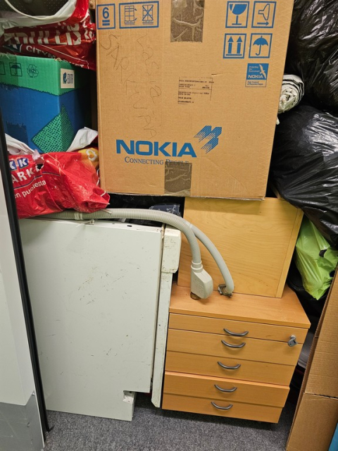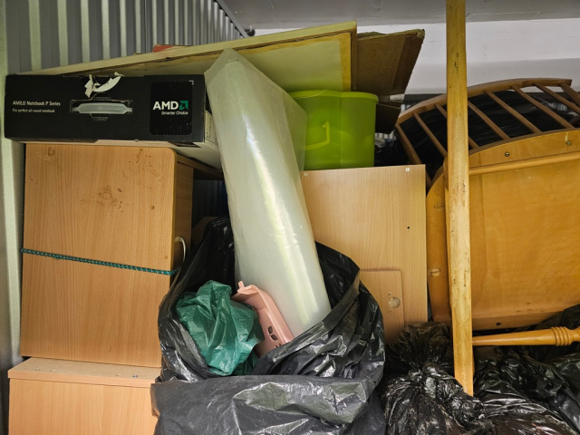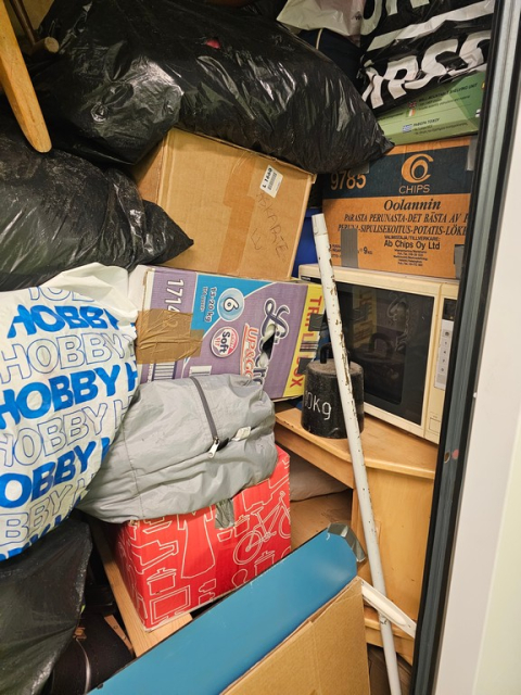 Myydään huutokaupalla kuvassa näkyvän varaston sisältö, vuokranantajan / haltijan lukuun.