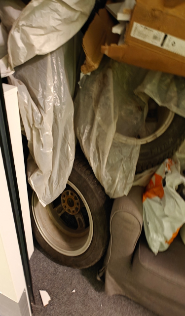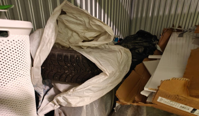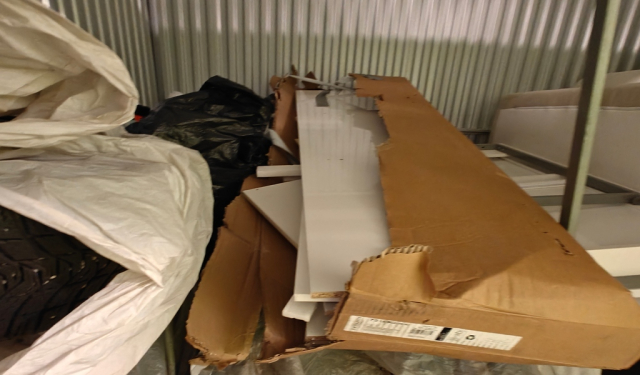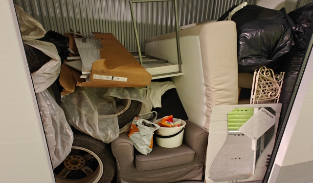 Myydään huutokaupalla kuvassa näkyvän varaston sisältö, vuokranantajan / haltijan lukuun.