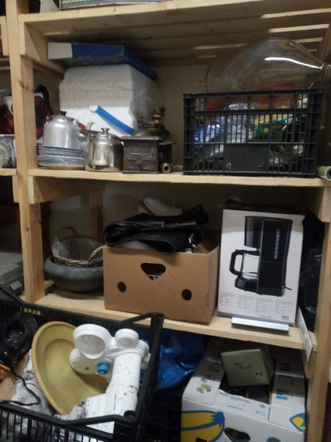 Myydään huutokaupalla kuvassa näkyvän varaston sisältö, vuokranantajan / haltijan lukuun.