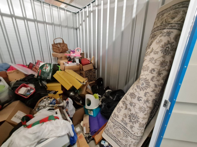 Myydään huutokaupalla kuvassa näkyvän varaston sisältö, vuokranantajan / haltijan lukuun.
