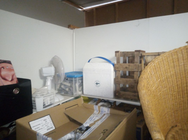 Myydään huutokaupalla kuvassa näkyvän varaston sisältö, vuokranantajan / haltijan lukuun.