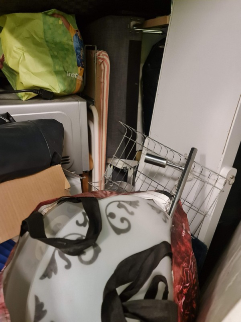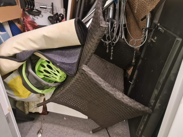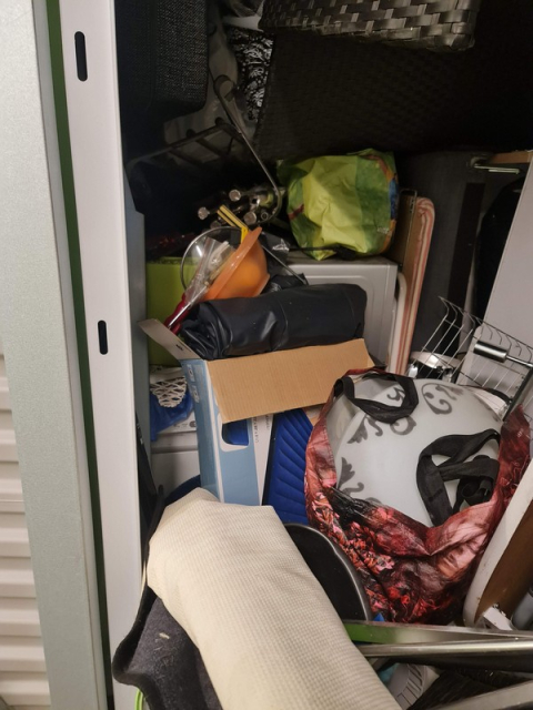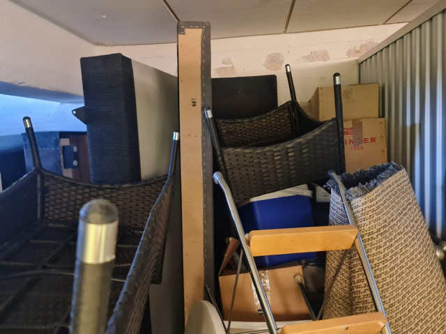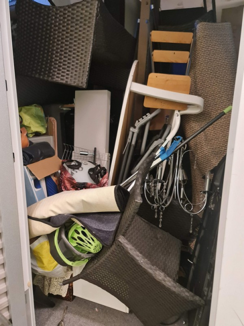 Myydään huutokaupalla kuvassa näkyvän varaston sisältö, vuokranantajan / haltijan lukuun.