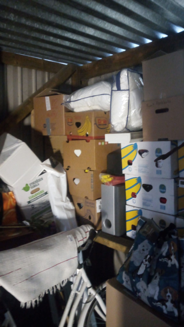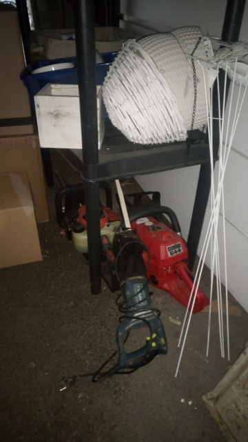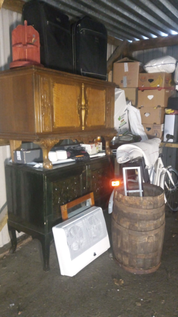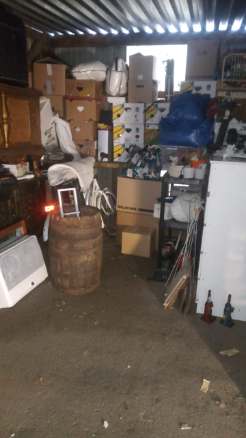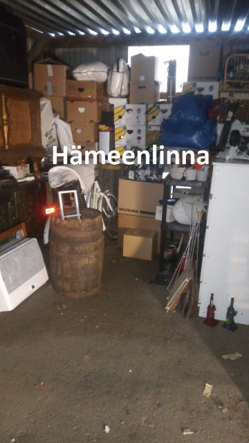 Myydään huutokaupalla kuvassa näkyvän varaston sisältö, vuokranantajan / haltijan lukuun.