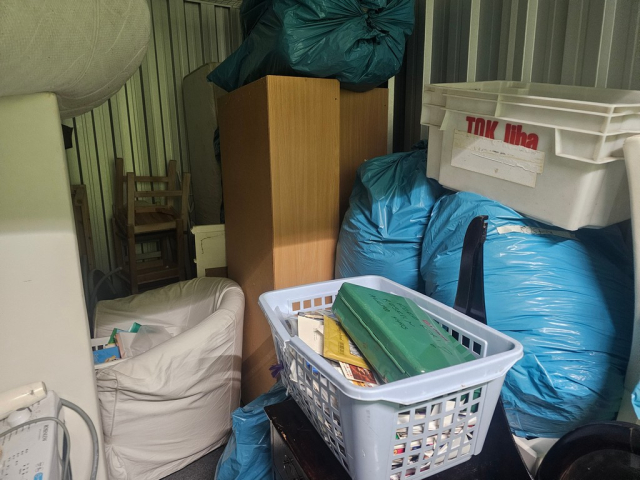 Myydään huutokaupalla kuvassa näkyvän varaston sisältö, vuokranantajan / haltijan lukuun.