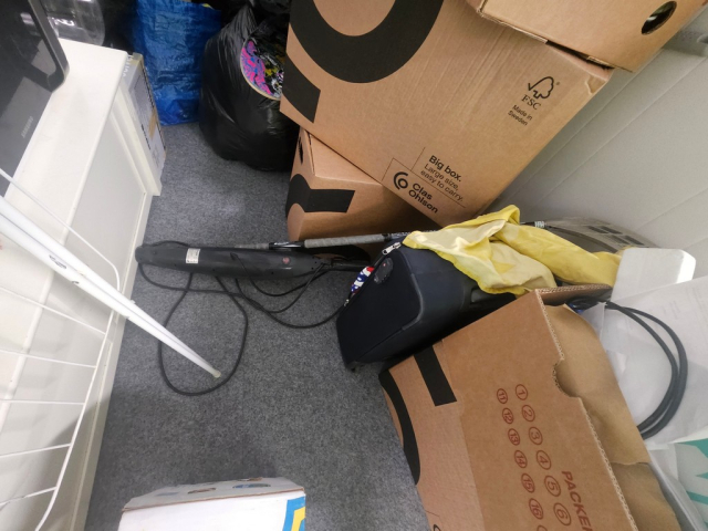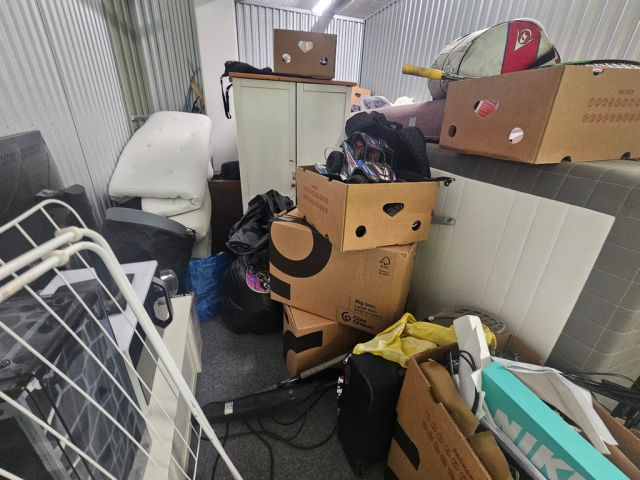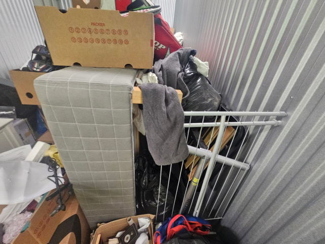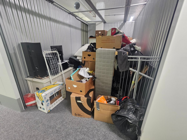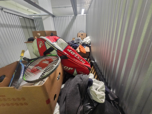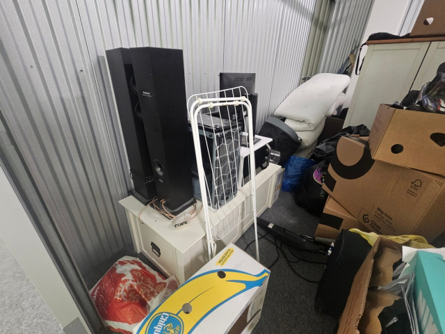 Myydään huutokaupalla kuvassa näkyvän varaston sisältö, vuokranantajan / haltijan lukuun.