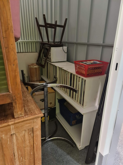 Myydään huutokaupalla kuvassa näkyvän varaston sisältö, vuokranantajan / haltijan lukuun.