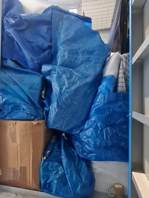 Myydään huutokaupalla kuvassa näkyvän varaston sisältö, vuokranantajan / haltijan lukuun.