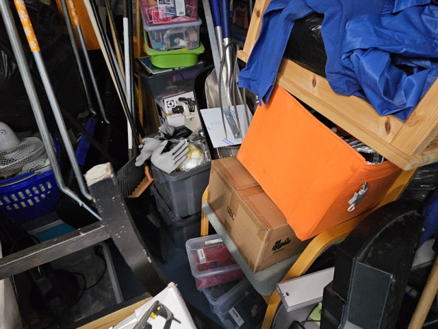 Myydään huutokaupalla kuvassa näkyvän varaston sisältö, vuokranantajan / haltijan lukuun.