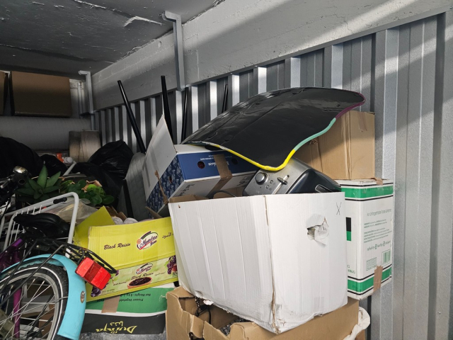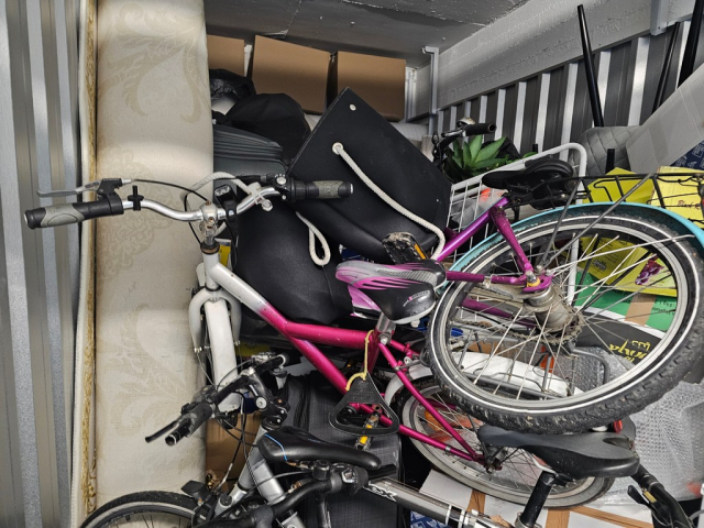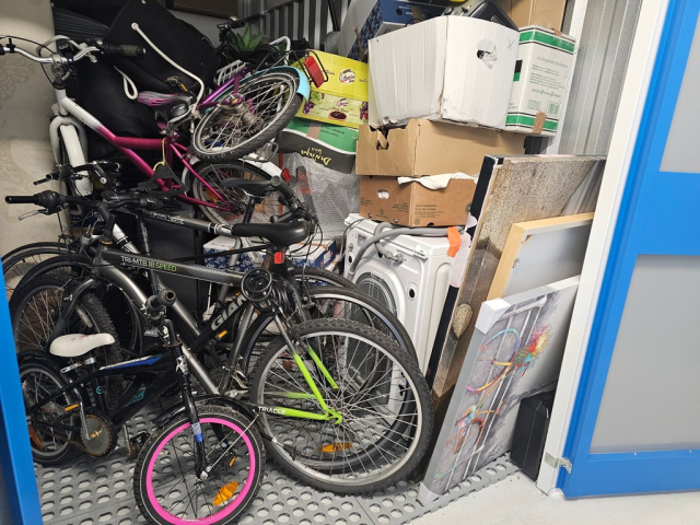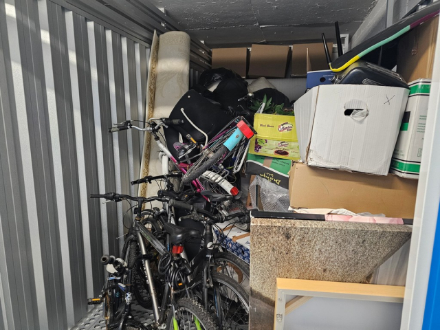 Myydään huutokaupalla kuvassa näkyvän varaston sisältö, vuokranantajan / haltijan lukuun.