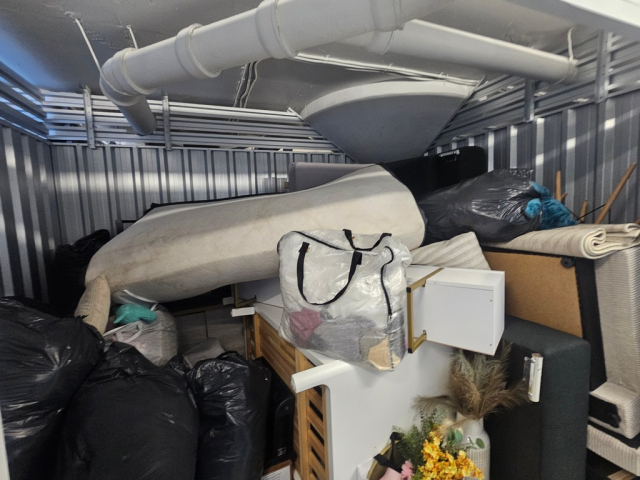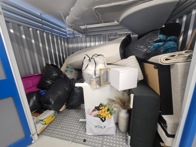 Myydään huutokaupalla kuvassa näkyvän varaston sisältö, vuokranantajan / haltijan lukuun.