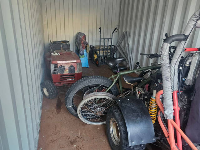 Myydään huutokaupalla kuvassa näkyvän varaston sisältö, vuokranantajan / haltijan lukuun.