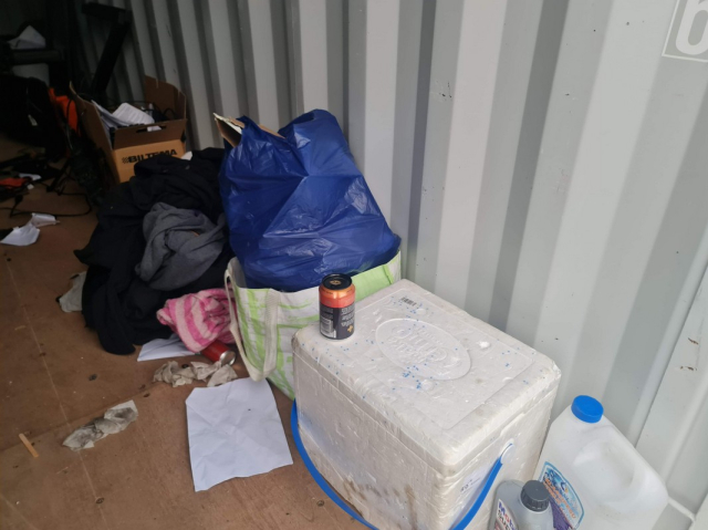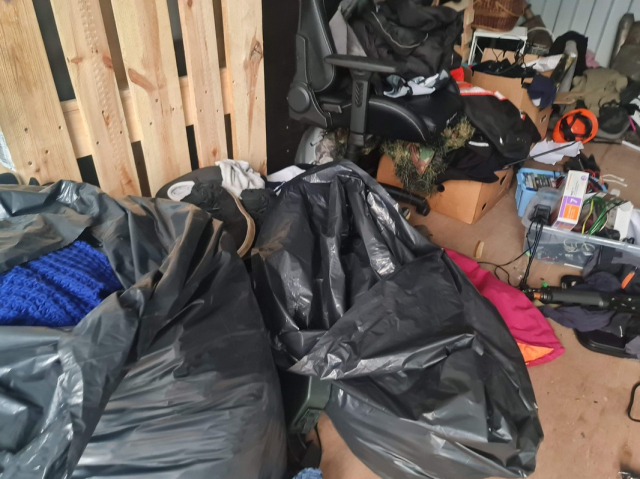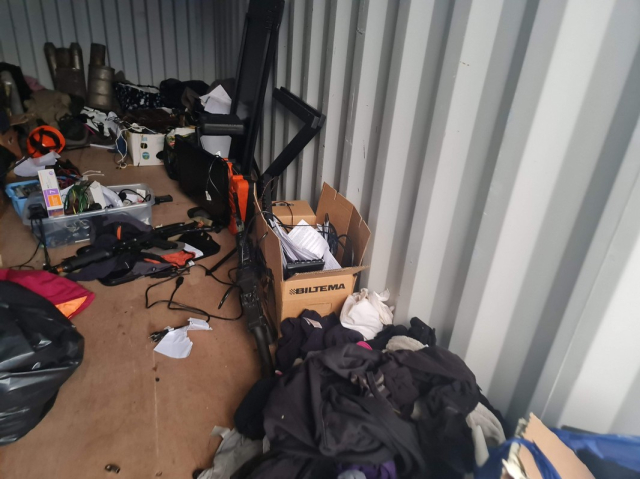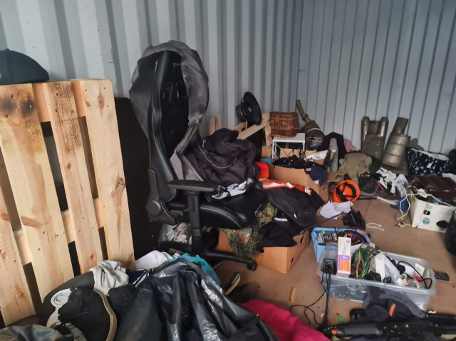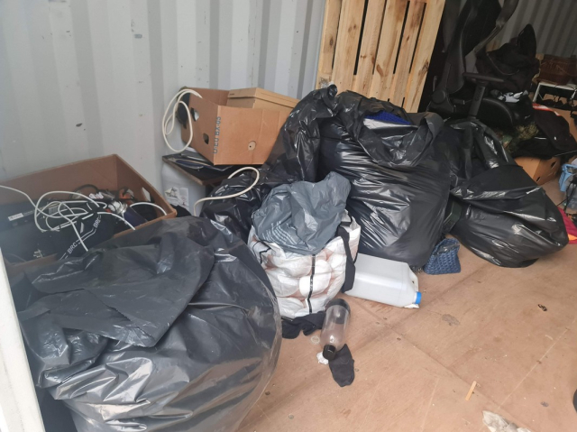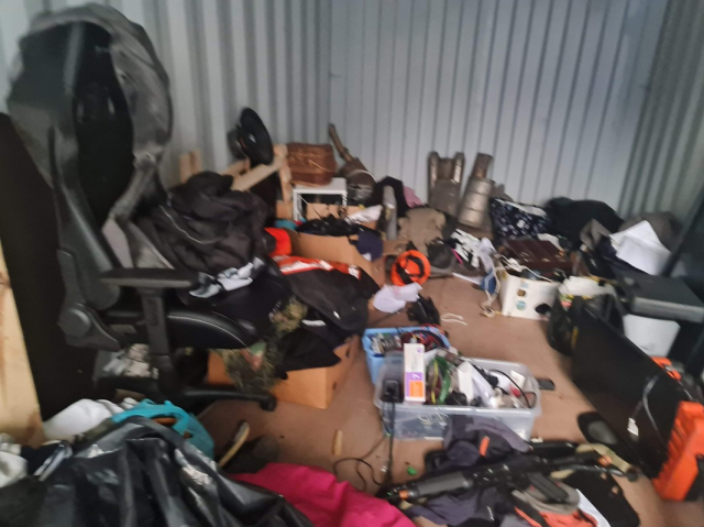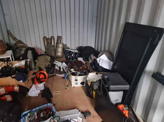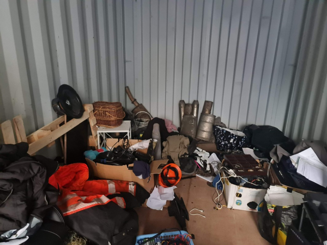 Myydään huutokaupalla kuvassa näkyvän varaston sisältö, vuokranantajan / haltijan lukuun.