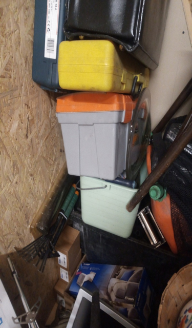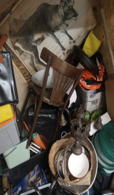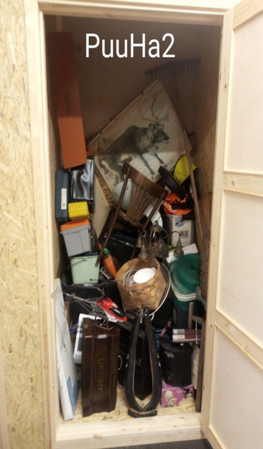 Myydään huutokaupalla kuvassa näkyvän varaston sisältö, vuokranantajan / haltijan lukuun.