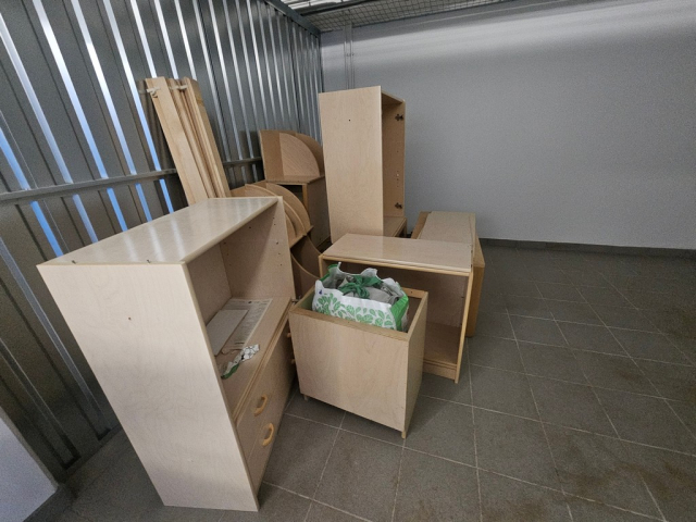 Myydään huutokaupalla kuvassa näkyvän varaston sisältö, vuokranantajan / haltijan lukuun.