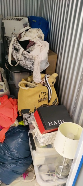 Myydään huutokaupalla kuvassa näkyvän varaston sisältö, vuokranantajan / haltijan lukuun.