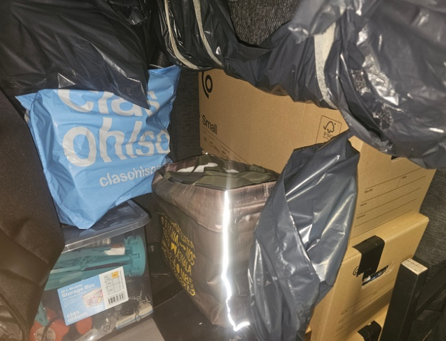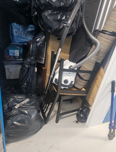 Myydään huutokaupalla kuvassa näkyvän varaston sisältö, vuokranantajan / haltijan lukuun.