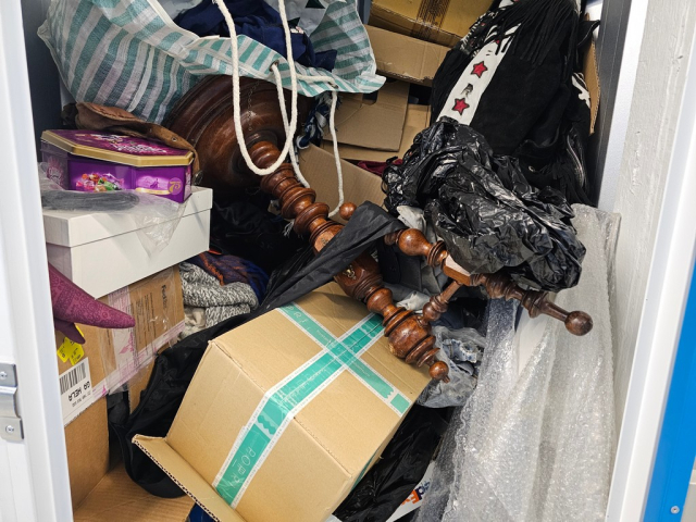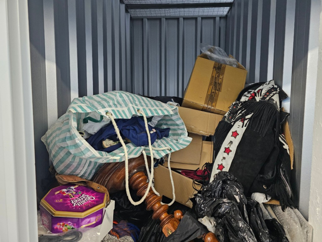 Myydään huutokaupalla kuvassa näkyvän varaston sisältö, vuokranantajan / haltijan lukuun.
