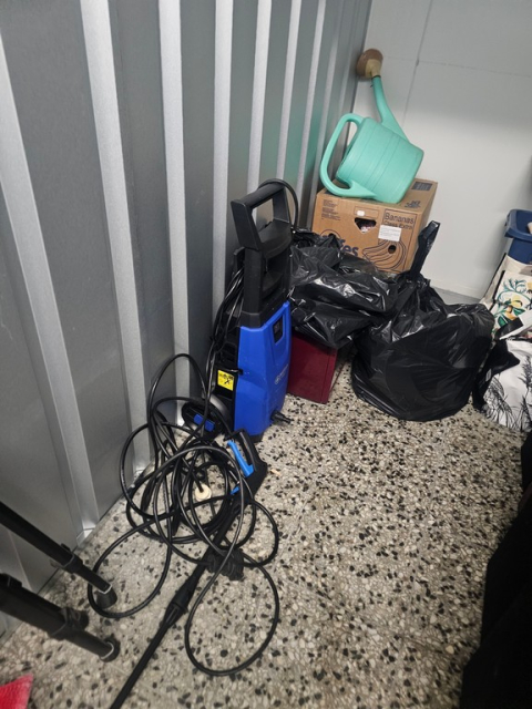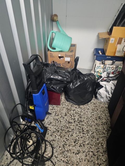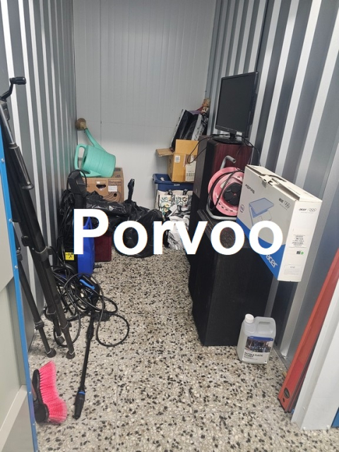 Myydään huutokaupalla kuvassa näkyvän varaston sisältö, vuokranantajan / haltijan lukuun.