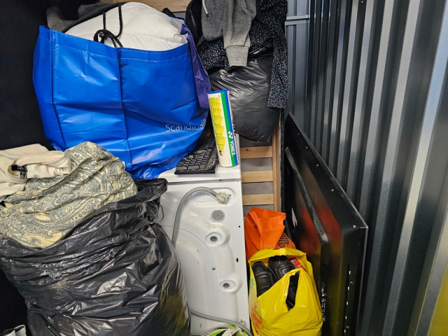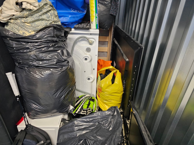 Myydään huutokaupalla kuvassa näkyvän varaston sisältö, vuokranantajan / haltijan lukuun.