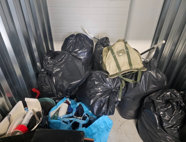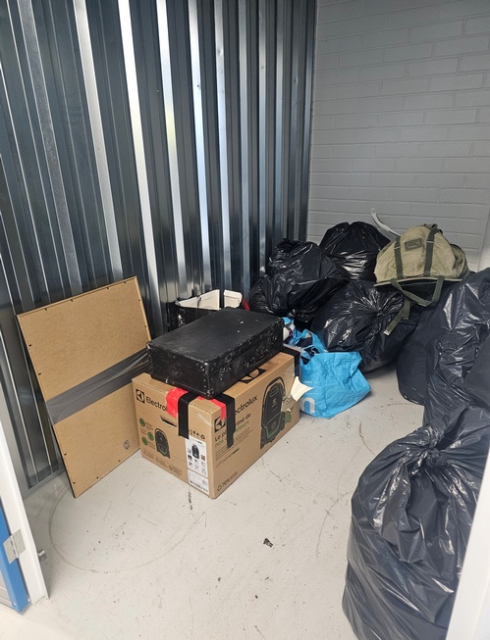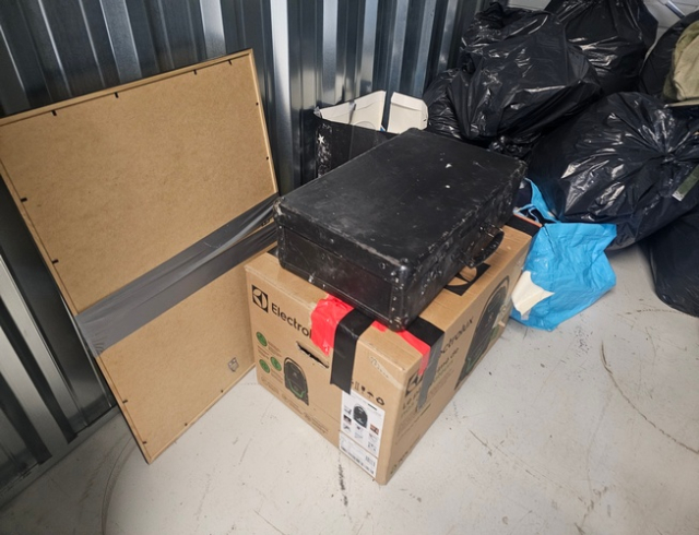 Myydään huutokaupalla kuvassa näkyvän varaston sisältö, vuokranantajan / haltijan lukuun.