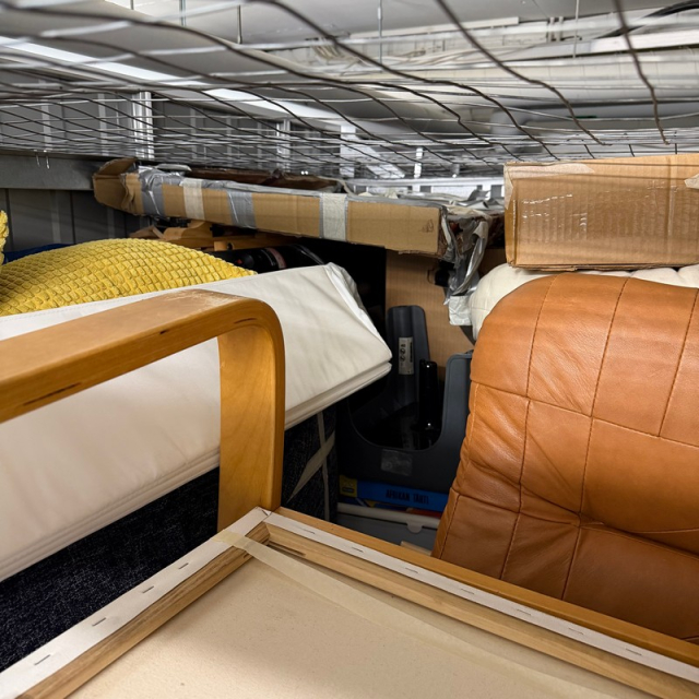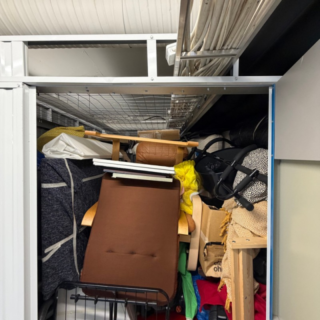 Myydään huutokaupalla kuvassa näkyvän varaston sisältö, vuokranantajan / haltijan lukuun.