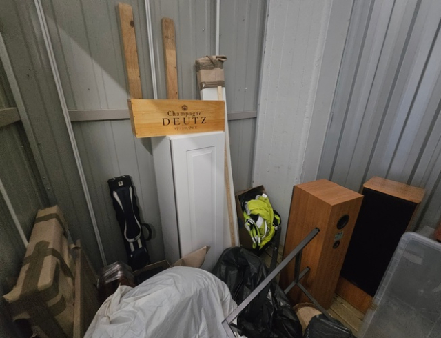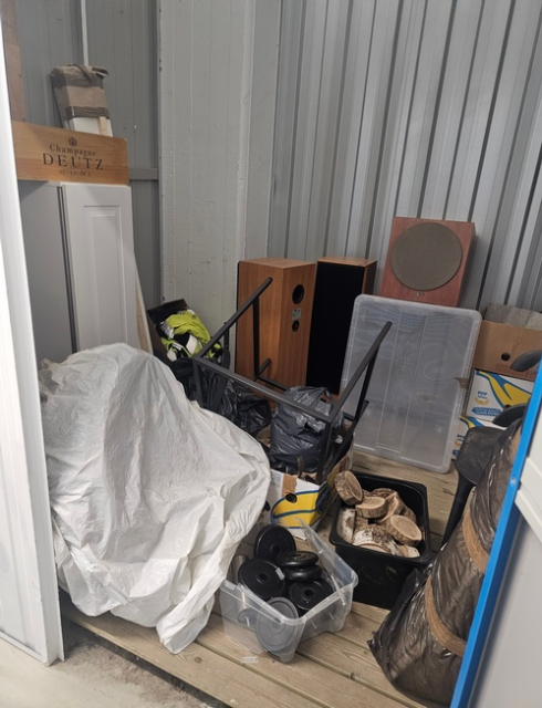 Myydään huutokaupalla kuvassa näkyvän varaston sisältö, vuokranantajan / haltijan lukuun.