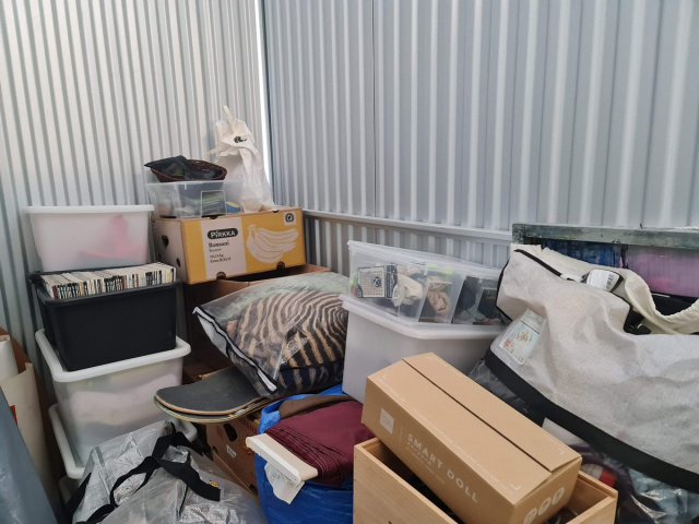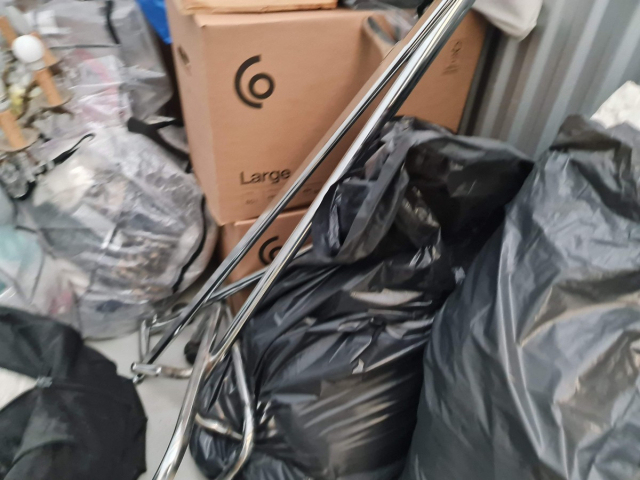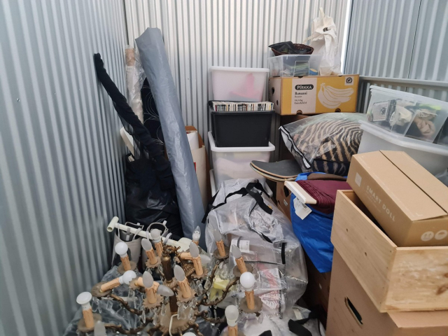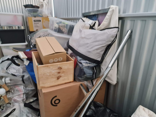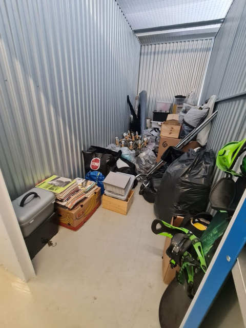 Myydään huutokaupalla kuvassa näkyvän varaston sisältö, vuokranantajan / haltijan lukuun.