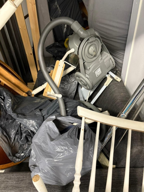 Myydään huutokaupalla kuvassa näkyvän varaston sisältö, vuokranantajan / haltijan lukuun.