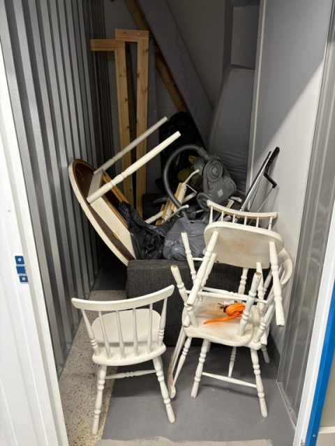 Myydään huutokaupalla kuvassa näkyvän varaston sisältö, vuokranantajan / haltijan lukuun.