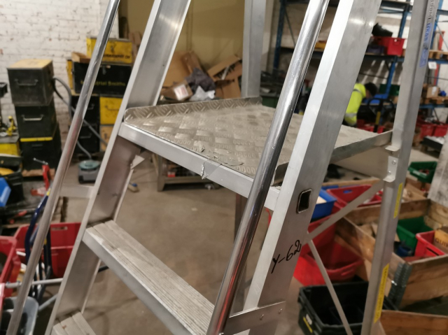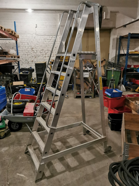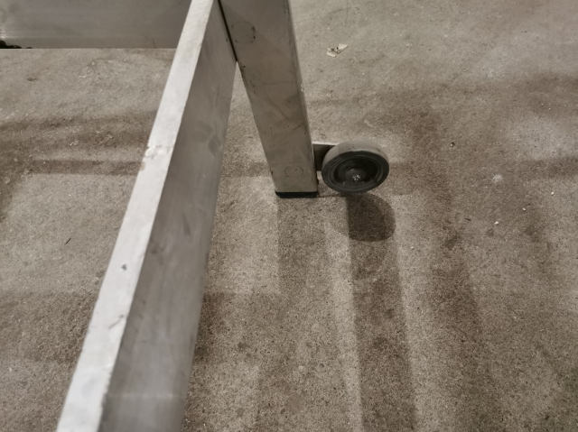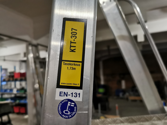 Kuvien mukainen: Turvatikkaat kaiteilla ja pyörillä, KTT-307. Tasokorkeus 1,73 m.