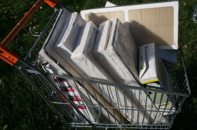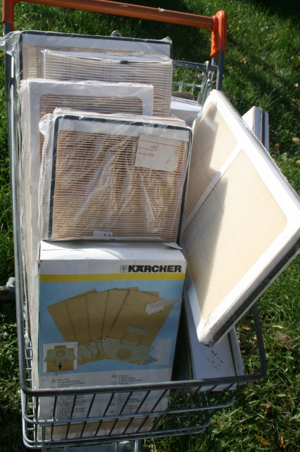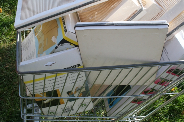 Kärryllinen ( kärry ei kuulu kauppaan) tavaraa, mm. ilmastointikoneen suodattimia, ym.