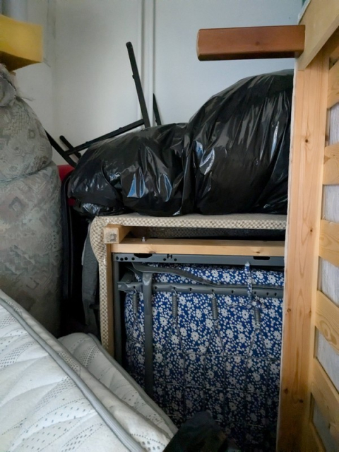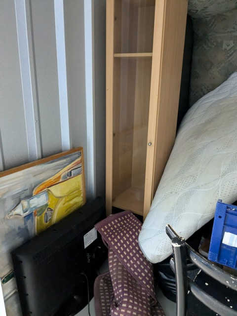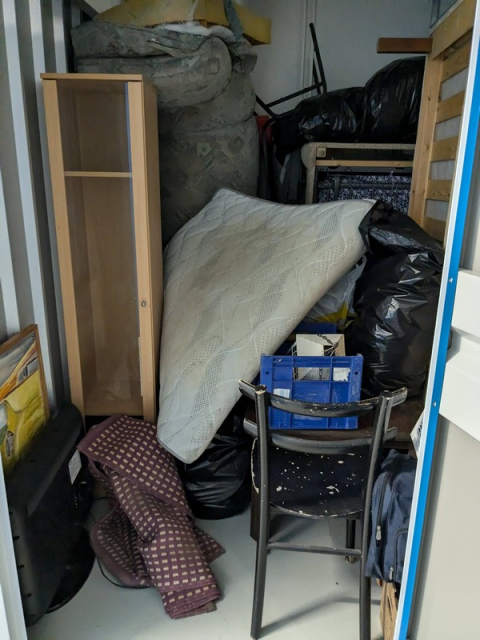 Myydään huutokaupalla kuvassa näkyvän varaston sisältö, vuokranantajan / haltijan lukuun.