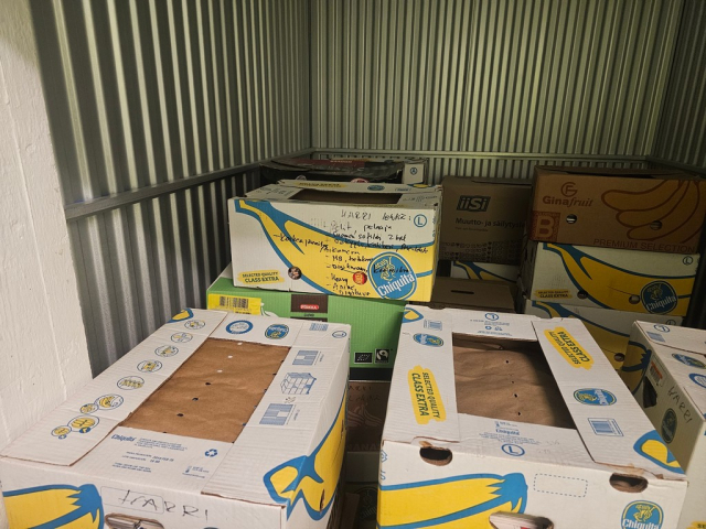 Myydään huutokaupalla kuvassa näkyvän varaston sisältö, vuokranantajan / haltijan lukuun.