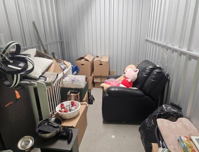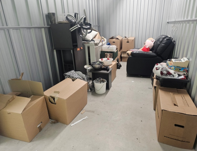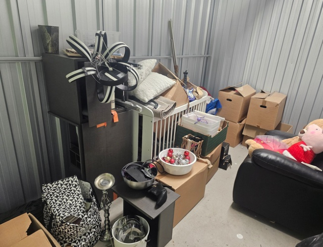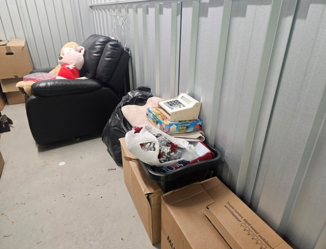 Myydään huutokaupalla kuvassa näkyvän varaston sisältö, vuokranantajan / haltijan lukuun.