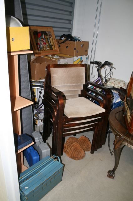 Myydään huutokaupalla kuvassa näkyvän varaston sisältö, vuokranantajan / haltijan lukuun.