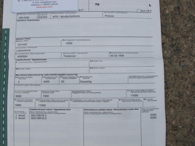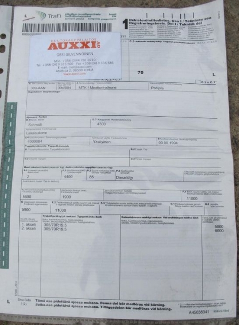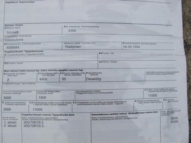 Schmidt / Broddway imu / lakaisukone, ajettu n 33000 km / 1670 h.