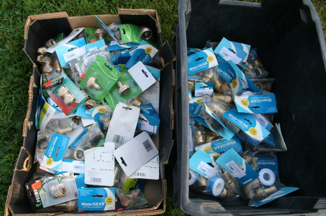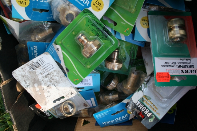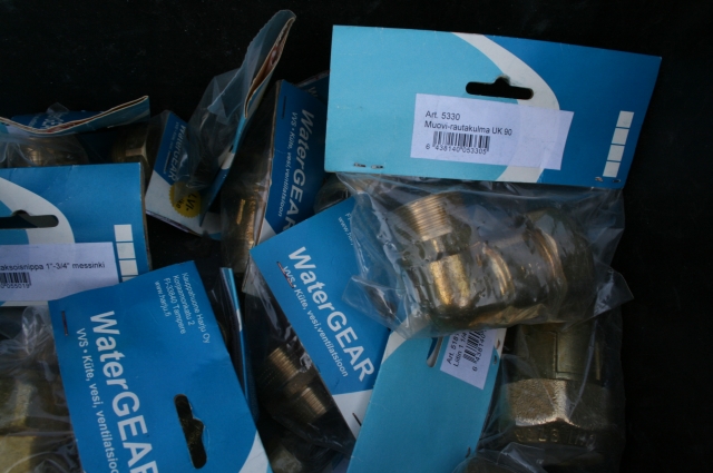 lvi-tarvikkeita iso kasa, mm. messinkisiä putken lähtö-ym letkuliittimiä, uusia.